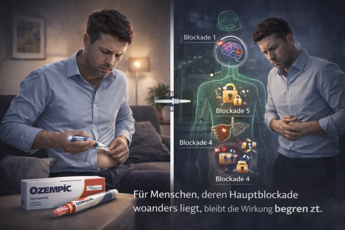 Die Wirkung ist real — solange Sie spritzen. Aber es adressiert nur einen Mechanismus. Für Menschen, deren Hauptblockade woanders liegt, bleibt die Wirkung begrenzt.